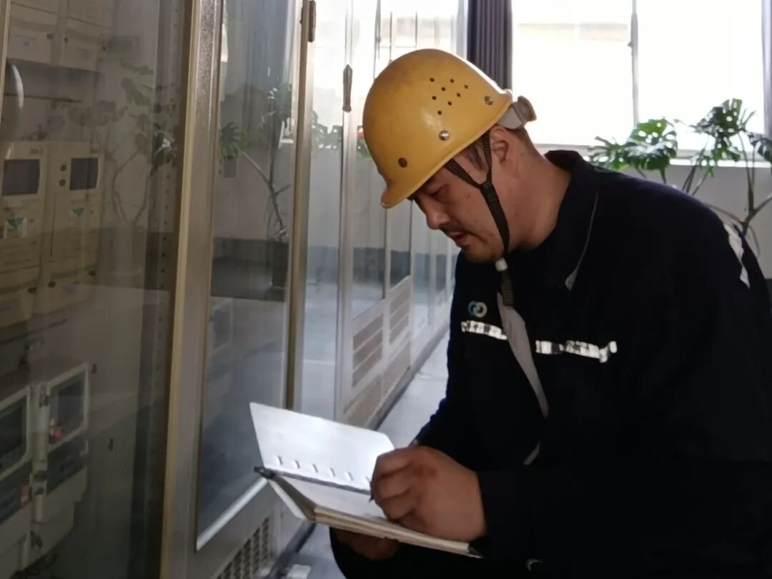 变电站值班人员加强巡检,细致记录数据、排查隐患,用行动践行“春节我在岗,用电请放心”的承诺,守护着节日的每一盏灯火。国庄站青岗员聂兵巡检设备、记录运行数据、排查安全隐患。